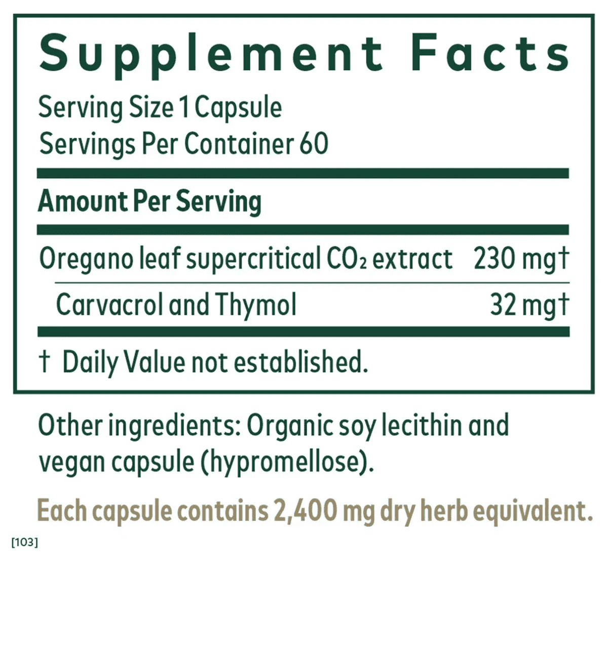 Oregano leaf supercritical CO₂ extract … 230 mg … †